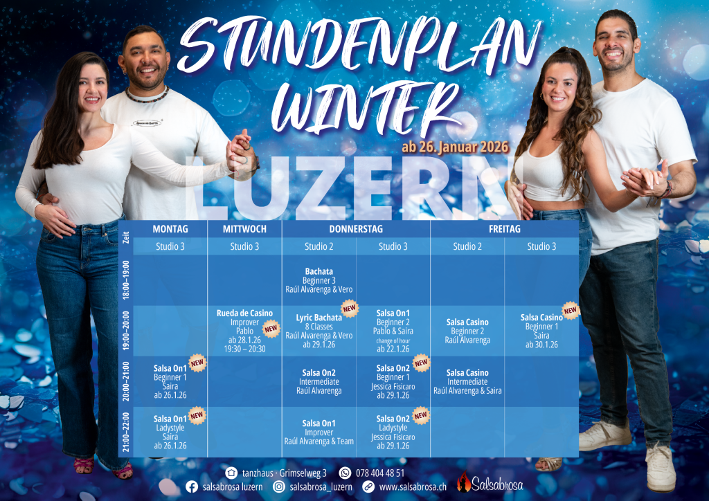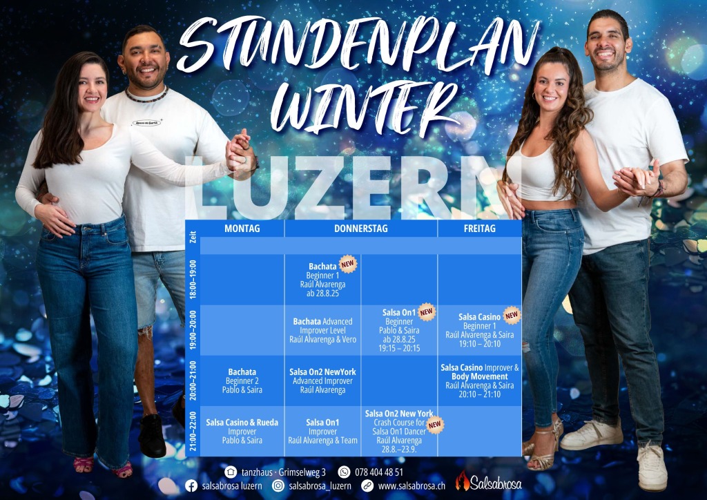 Welcome to the Salsabrosa Community! Our dance school focuses on latin american dances like Salsa Puerto, Salsa NY Style, Salsa Cubana, Bachata and many more. Salsabrosa is more than a dance school: we are a fantastic team, friends, students and teachers who share a passion for music and dance. At Salsabrosa you can learn from qualified teachers who love what they do. If you are looking for a new hobby, want to meet new people or just have fun after a stressful day, then this is the place for you! We teach six days a week and you can choose from a lot of classes. Make sure you don't miss the chance to be part of our community. We look forward to meeting you! Any questions? Don't hesitate to contact us!